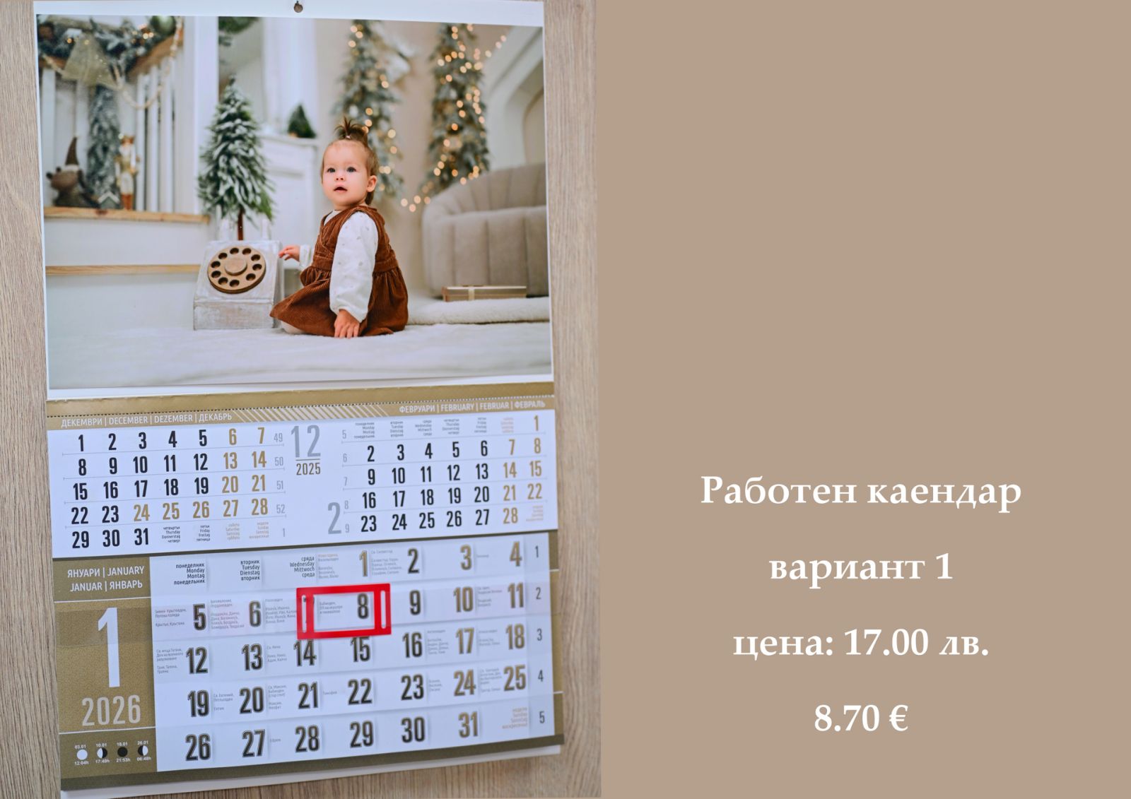 Работен календар вариант 1 с високо качество и снимка на клиента